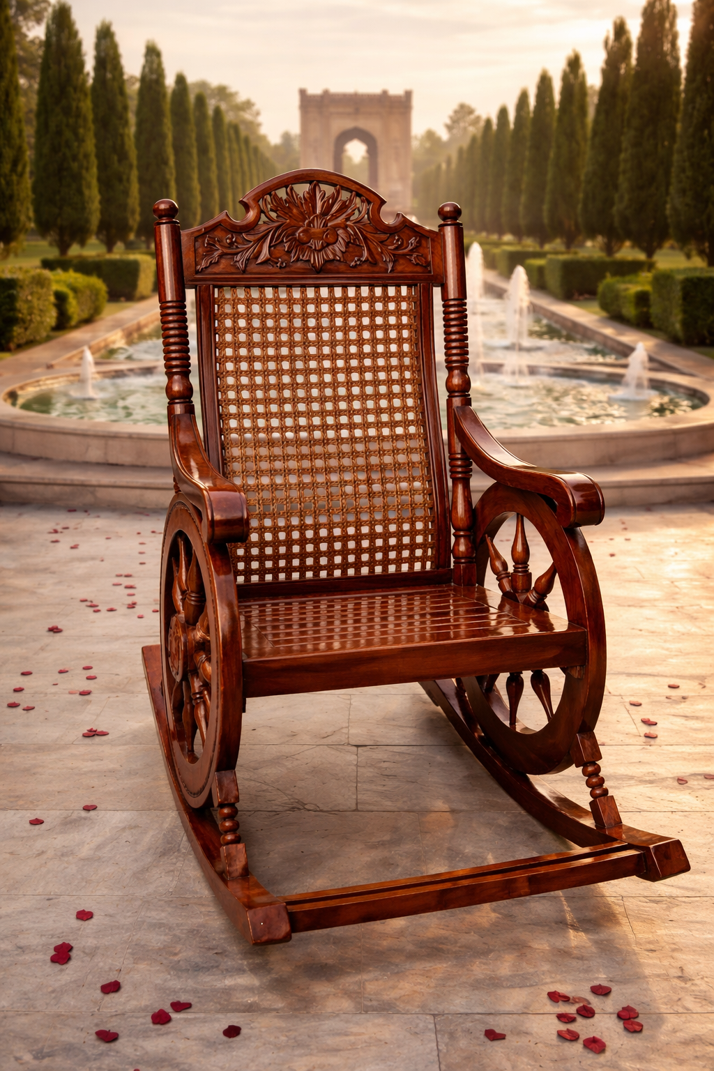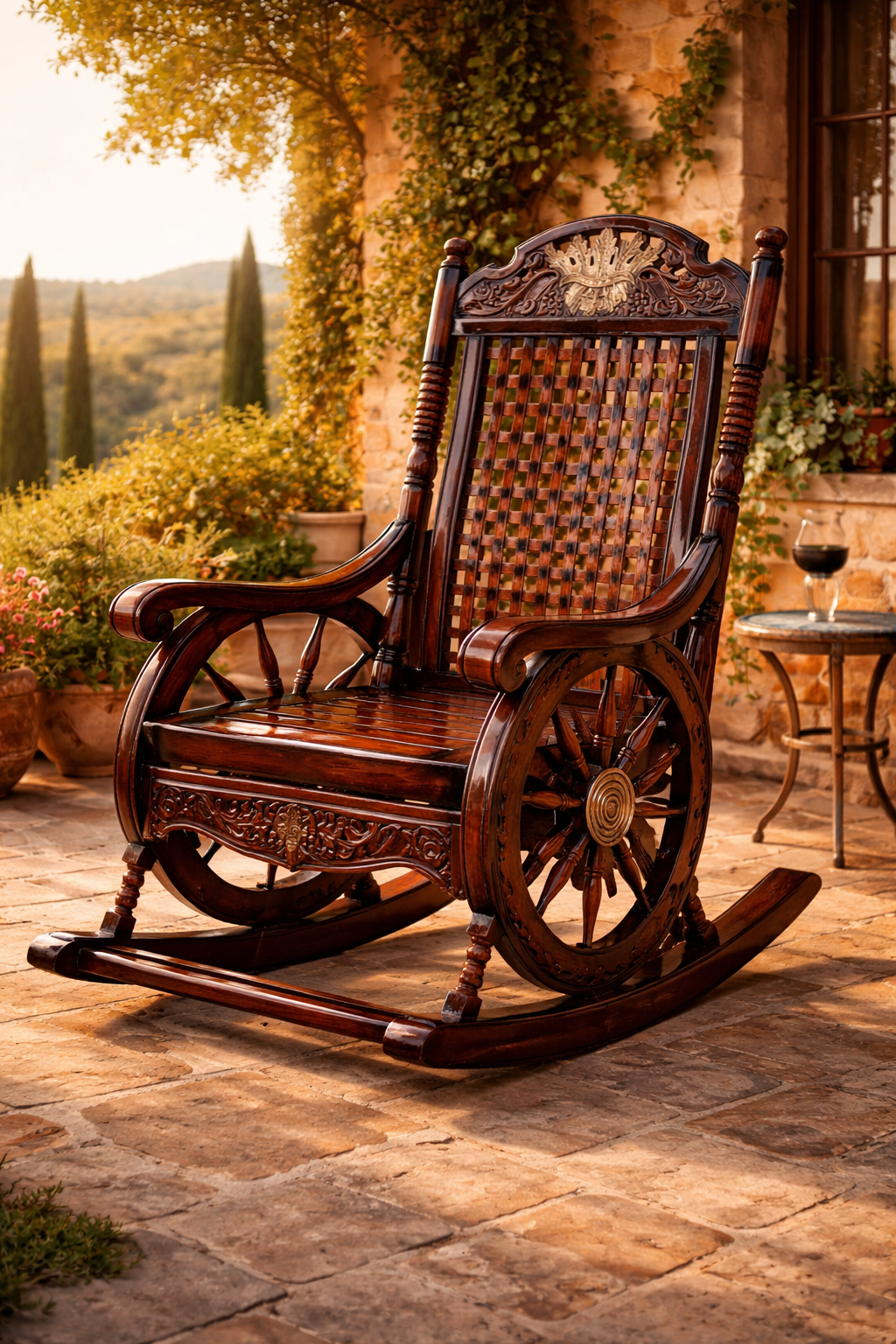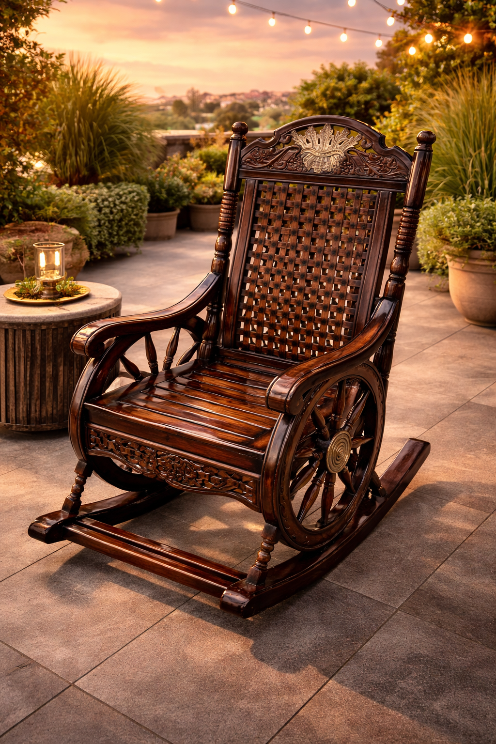 Beautifully hand-carved solid wood rocking chair. A heirloom piece with timeless appeal.