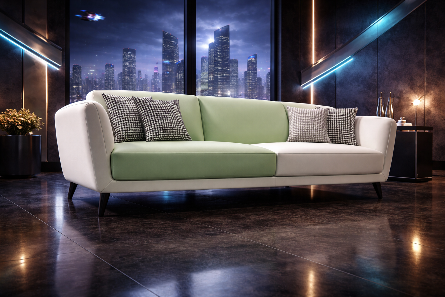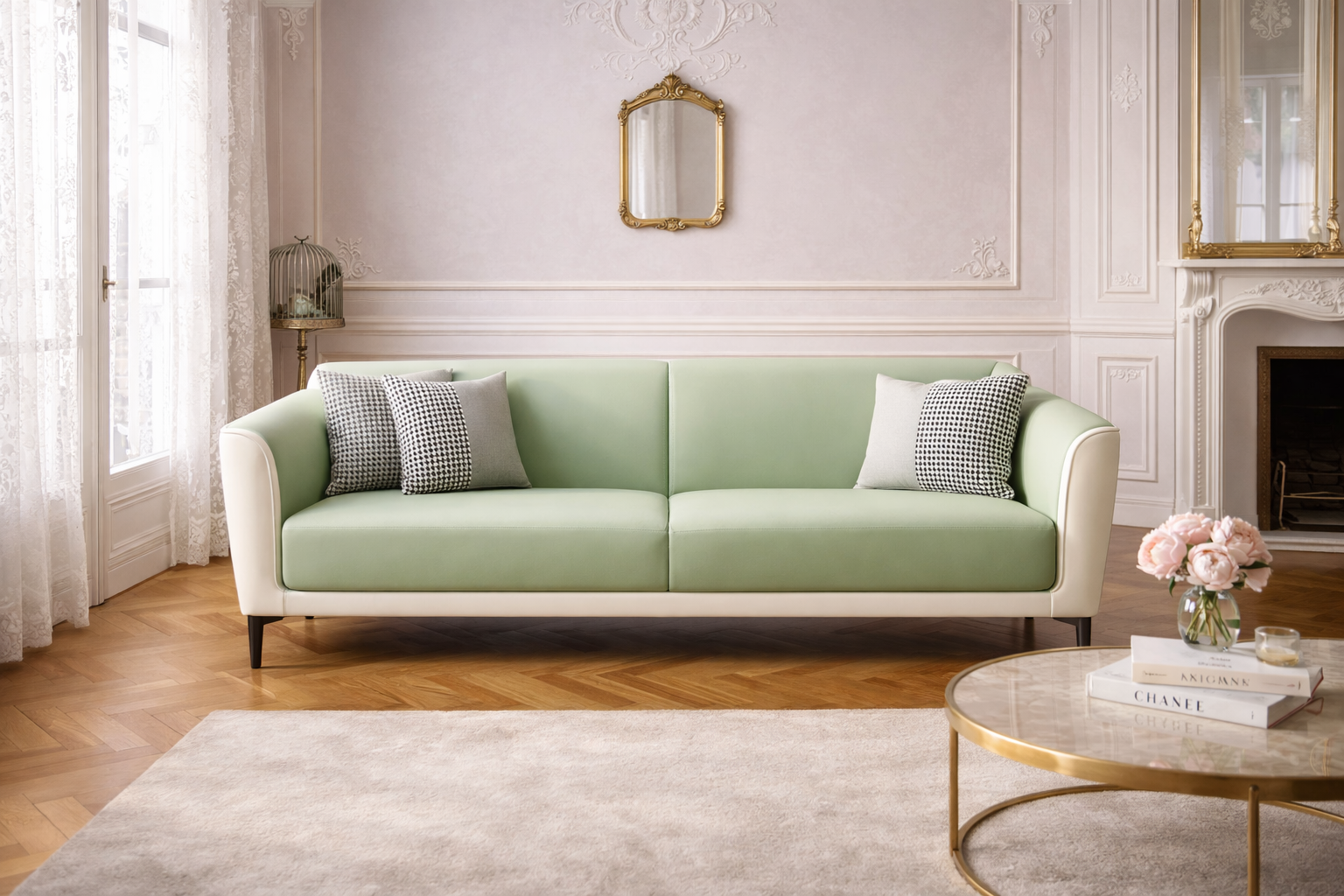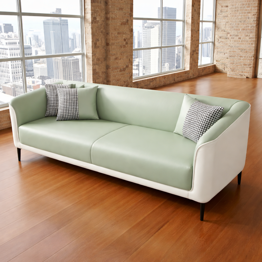 Refreshing mint and white sofa bringing a light airy feel to living spaces. Upholstered in easy-clean fabric.